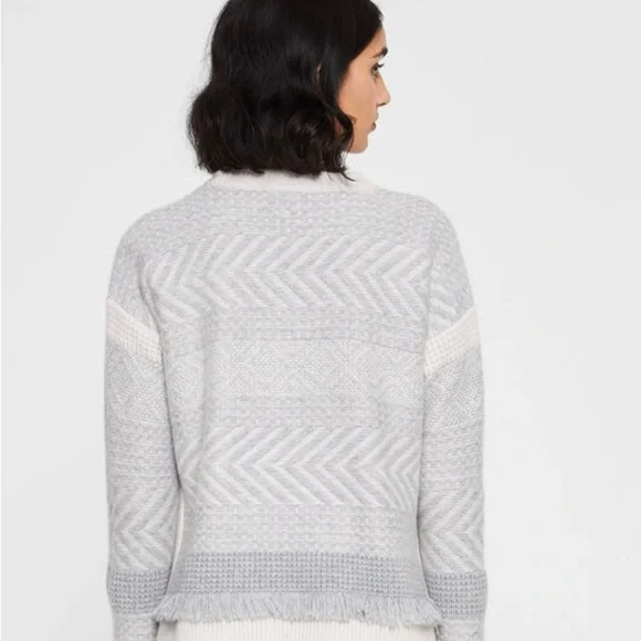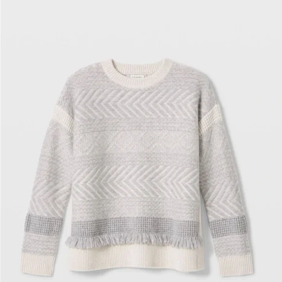 Make a lasting impression with this nuanced knit made from 100% cashmere for luxury and longevity. Woven in a mix of stitches for interesting texture and detailed with fringe trim at the hem for a playful finish.Grey Multi: Model is 5'x" wearing a size SDesigned for a classic, cozy fit.Knit with in a mixed-stitch pattern100% cashmereStraight fit with a 24" length; based on a size MPullover styleRib-knit crewneck, cuffs, and hem; long sleeves; fringe trimHand washImported