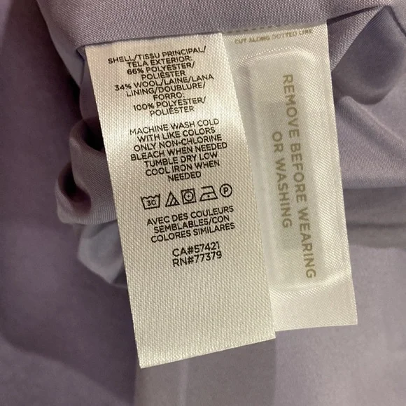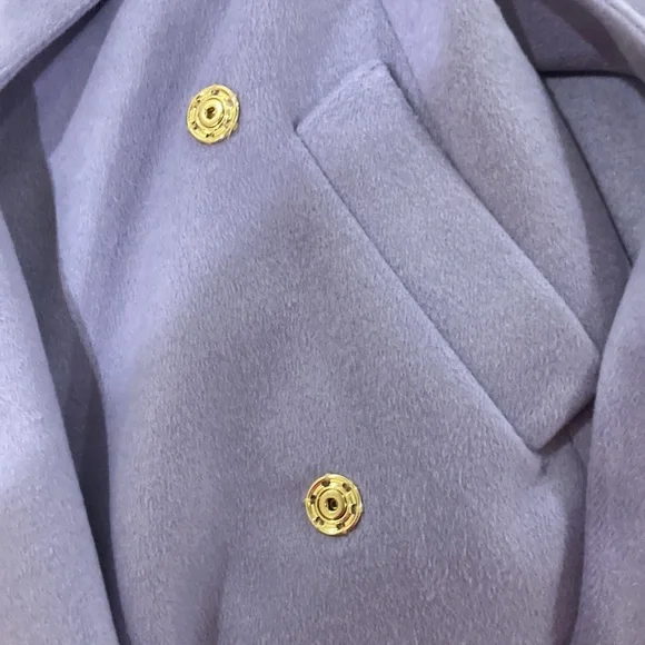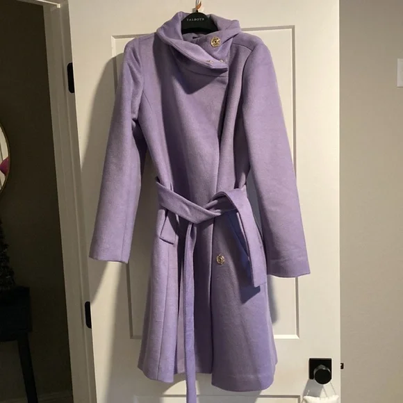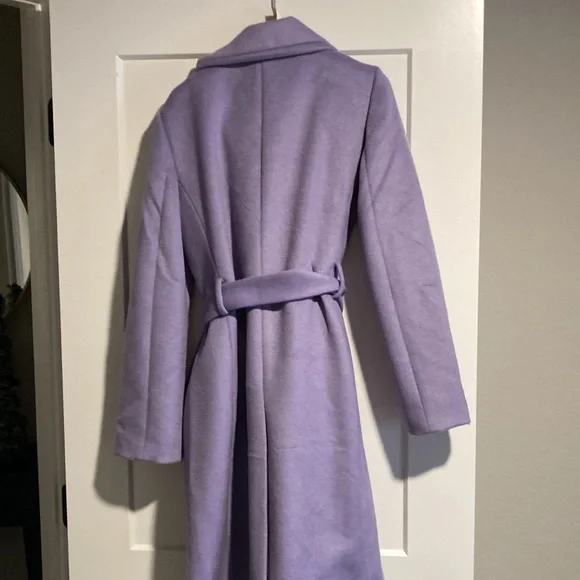 Color: Powder Purple (Images of the other colors are for detail view only)Material: Polyester, WoolCondition: New with tagsDetails: Consider the belted funnel neck coat the quintessential piece that pulls it all together. Funnel neck with hidden snaps. Long sleeves. Double breasted hidden snap closure. Self tie belt. Front angled welt pockets. Back vent. Lined.TC220901