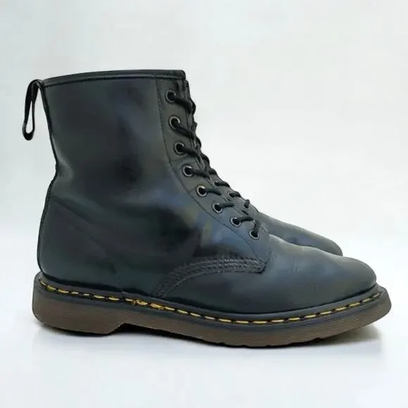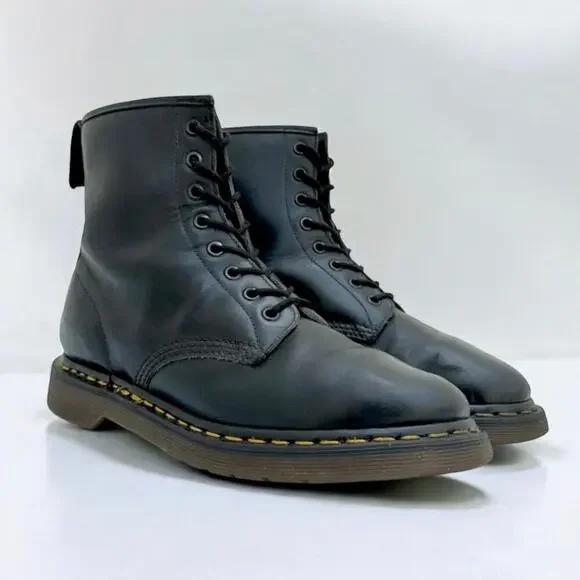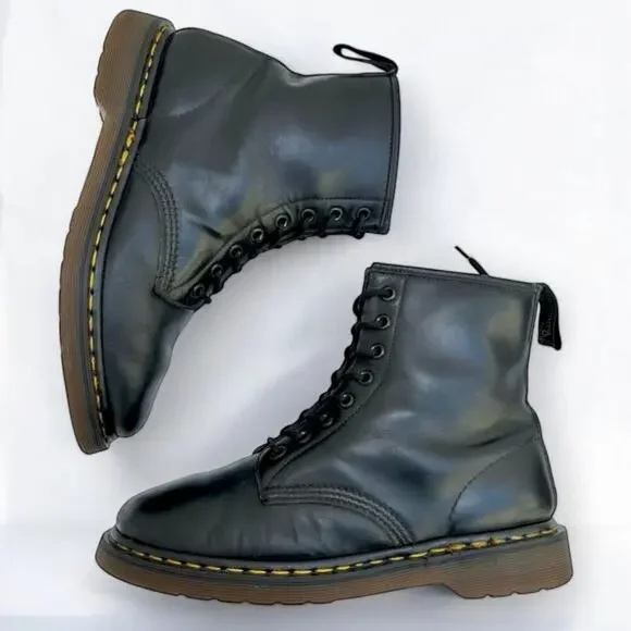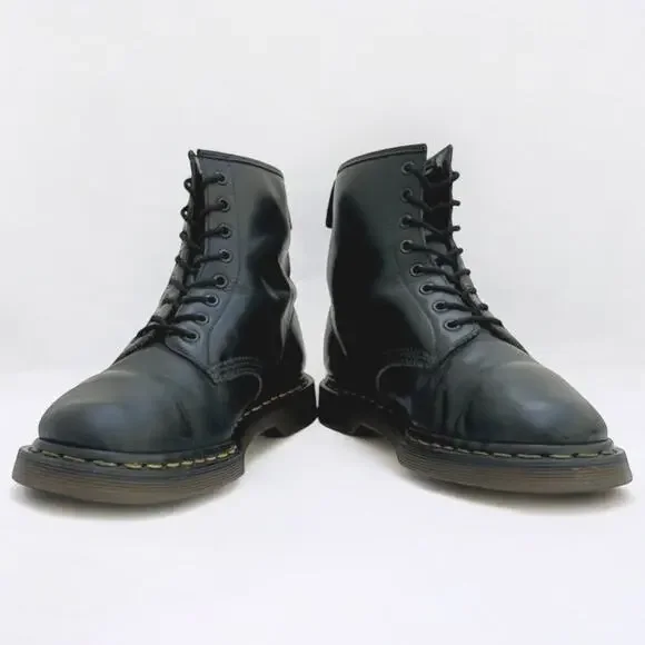 Limited run, special anniversary edition 1960-1990 vintage Made in England black smooth leather with vinyl tongue. The identifying information and “One in a Million” is branded into the heel of the insole, the same way older vintage boots are marked. These boots are solid! The materials are very high quality and likely very much like the original 1460s that were first produced in 1960. The smooth black leather uppers are very thick and even the leather trim along the top is less flimsy than comparable vintage styles. These boots are in good vintage condition. Scratches and creases are pictured and the leather has been cleaned and conditioned. The chunky ripple soles are in good condition with minor signs of wear as pictured.Boots come with the original black laces. I love to send free bonus laces, so let me know if you have a preference (see my listings for laces). UK8US Men’s 9US Women’s 10-10.5